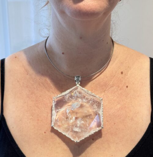 Large Lemurian quartz pendant set in solid 925 sterling silver